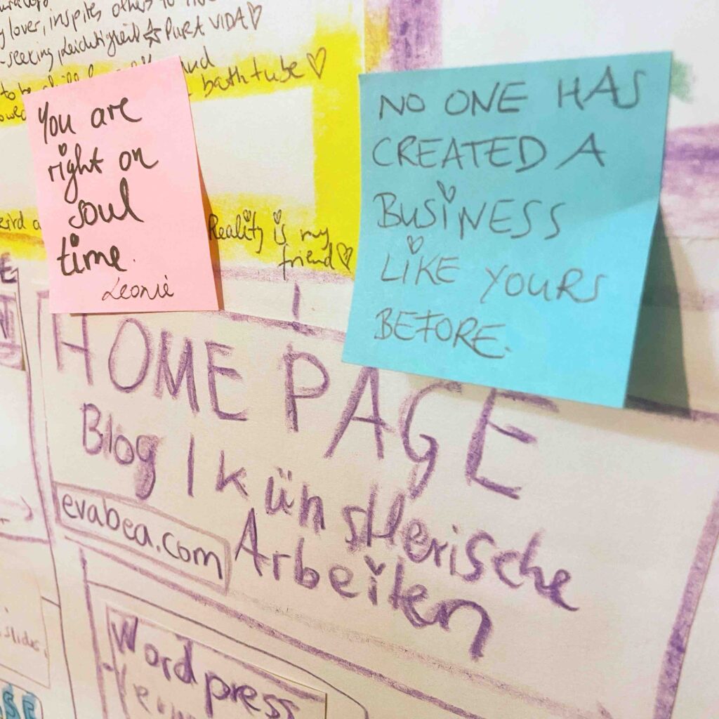 - Mich der Idee verschreiben, dass ich als vielbegabte, freiheitsliebende, künstlerische Seele mit ADHS ein Nischenbusiness machen könnte, also ein Business mit EINEM klaren Thema. Deswegen war mir diesmal klar: Die Homepage bekommt meinen Namen und ich baue eine Personal Brand (Personenmarke) auf. Meine Themen ändern sich ständig. Aber ich bin die Konstante in meinem Business. Ich bleibe: EVA BEA.