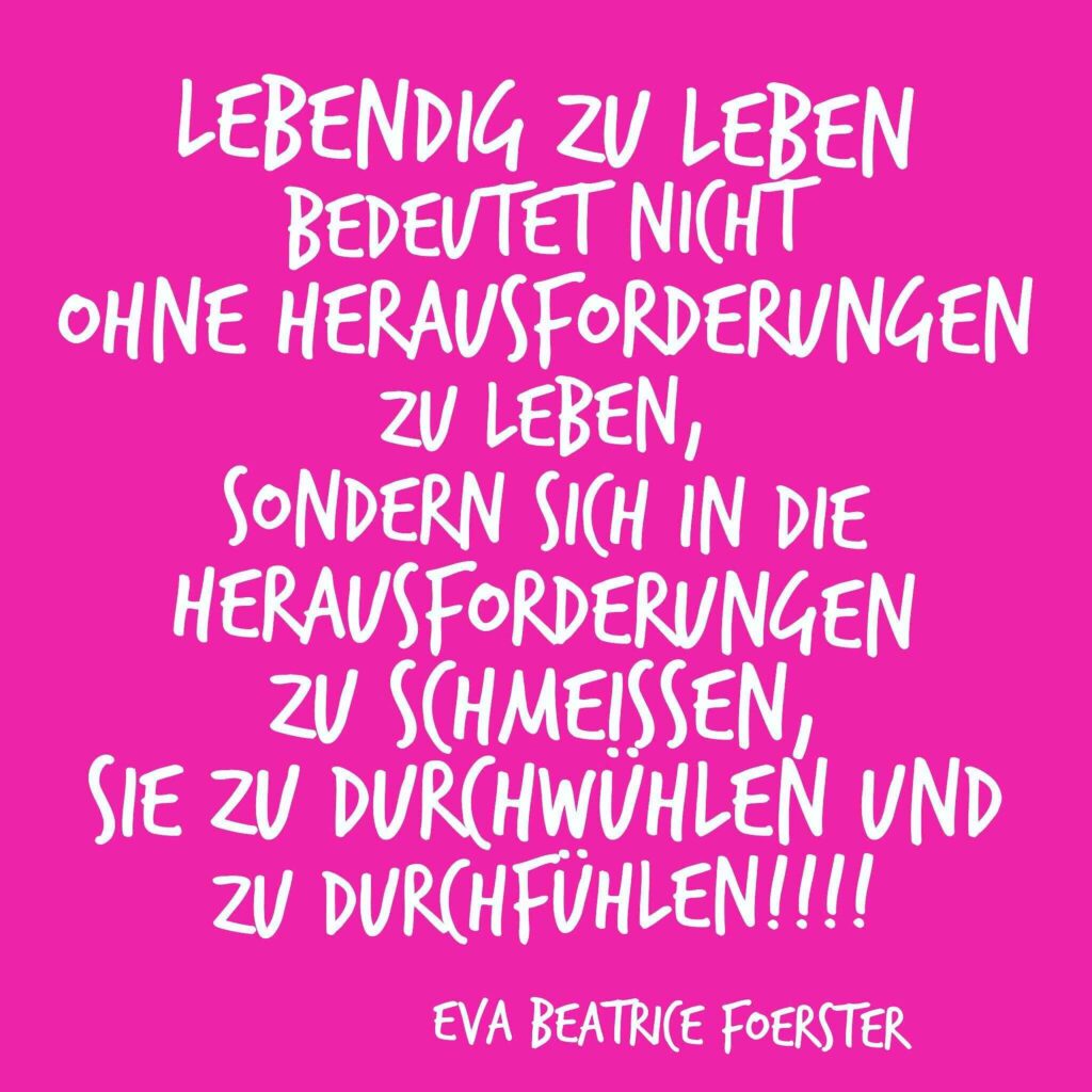 Lebendig zu leben bedeutet nicht ohne Herausforderungen zu leben, sondern sich in die Herausforderungen zu schmeissen, sie zu durchwühlen und zu durchfühlen und davon zu lernen!