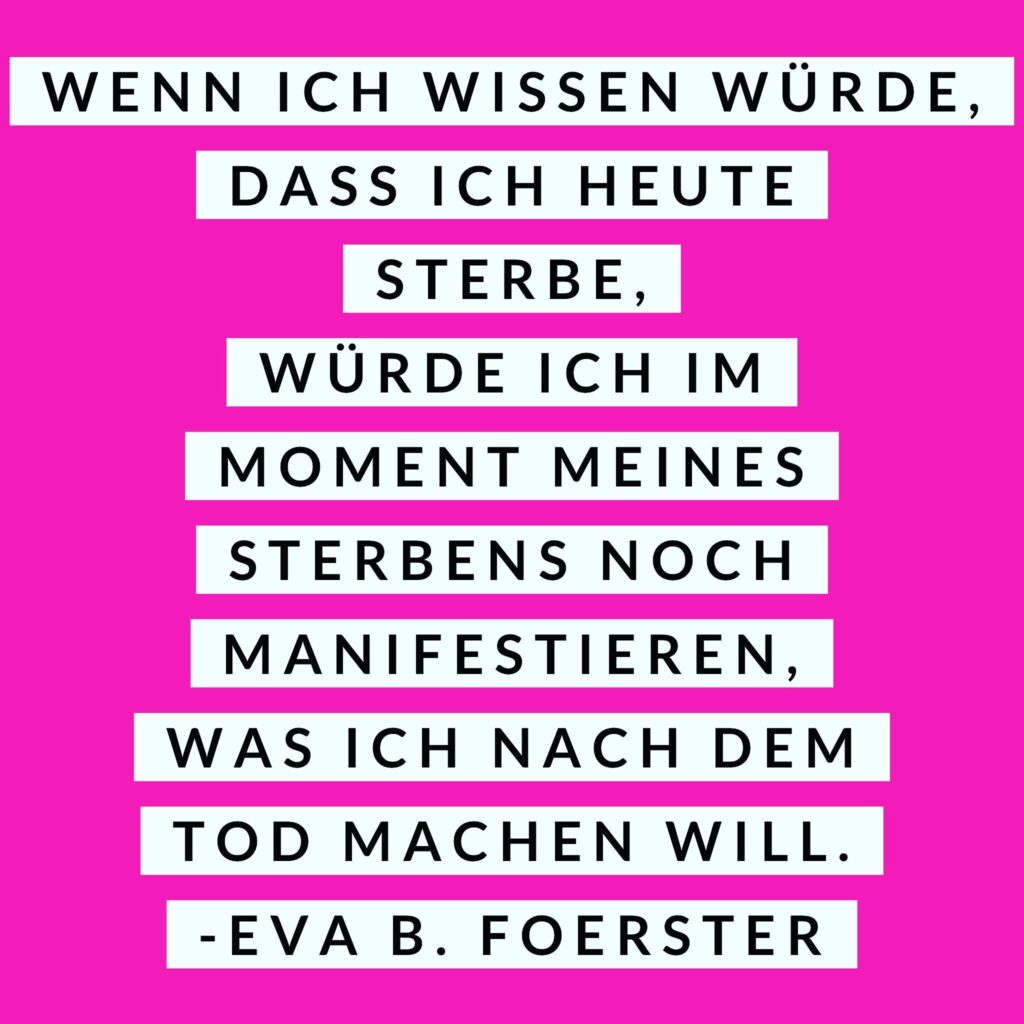Aber ich glaube so sehr an Manifestieren und die Zukunft erdenken, dass ich noch im Moment des Sterbens manifestieren würde, was ich nach dem Tod machen will.